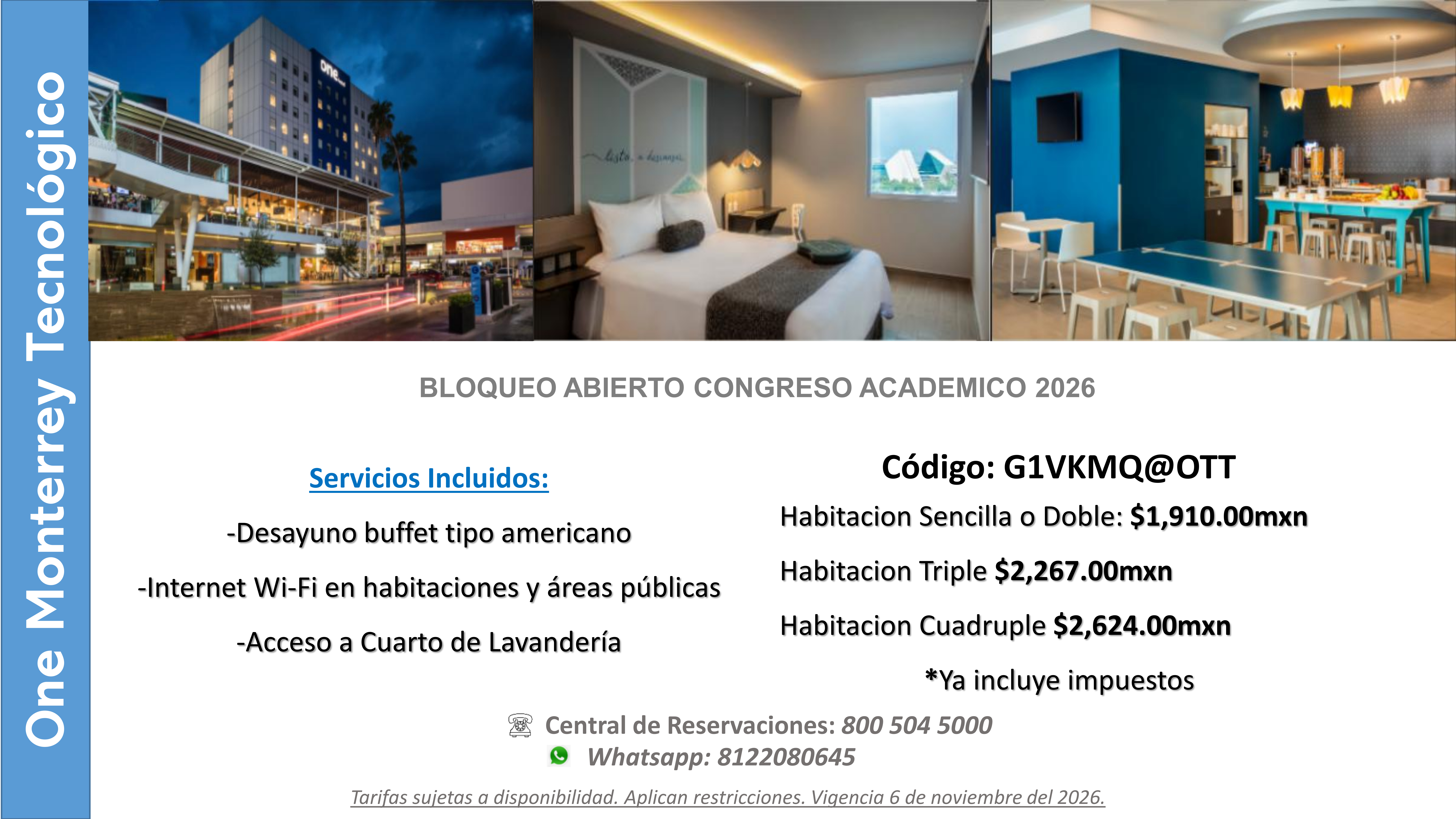 - Fiesta Inn Monterrey Tecnológico: link to Biofabrication 2026 special fee